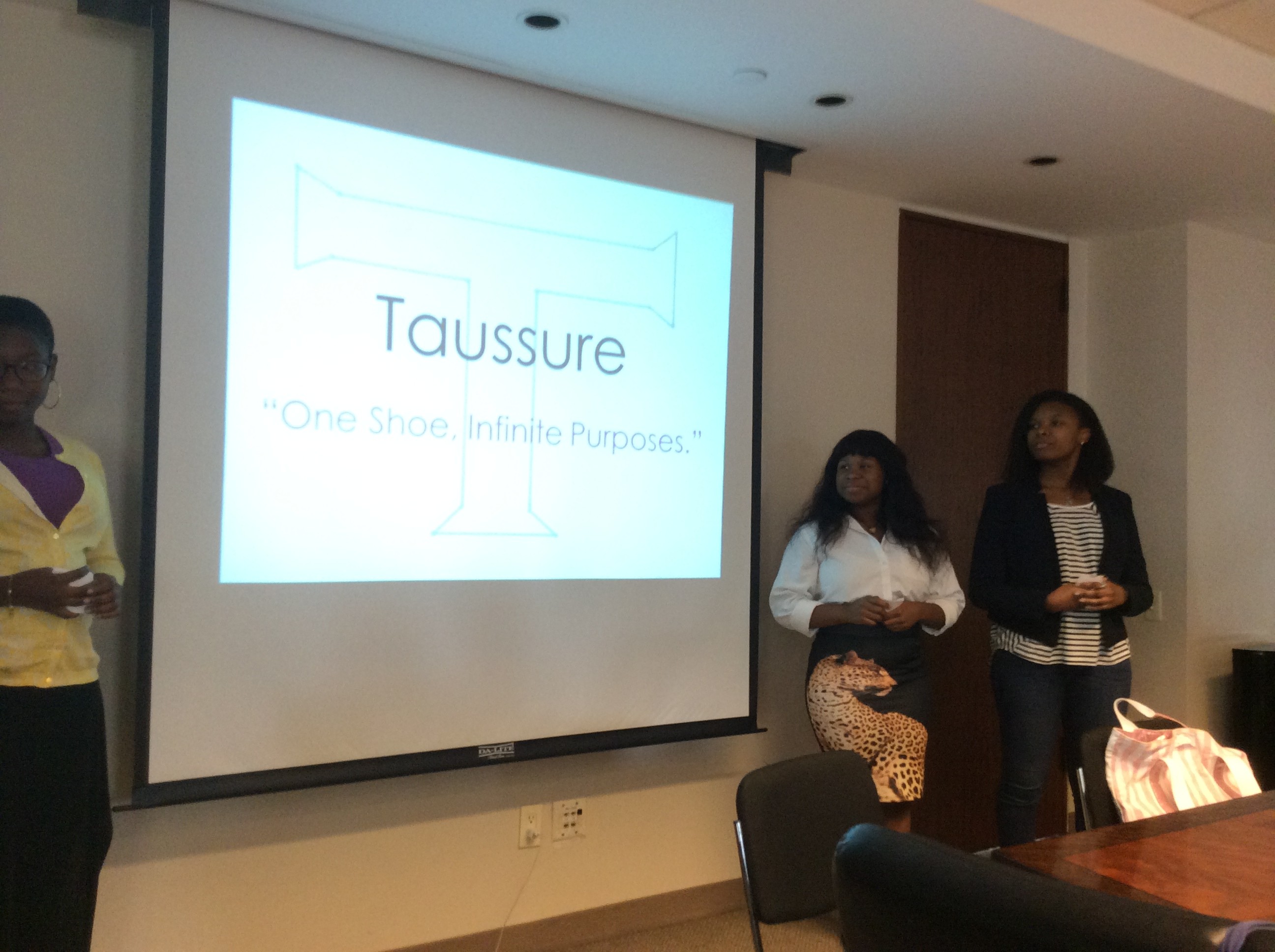 Tassure is proposing shoes with removable heels, or rather, interchangeable heels, so that instead of changing your shoes – you change your heels. (And eliminate the need for Dr. Scholl’s, as one of the girls pointed out.) The name itself is a combination of Italian and French – ‘heel’ and ‘shoe,’ respectively. Clever girls! They’ve got our vote! In fact, we were personally one of the judges – and Taussure won the competition.
