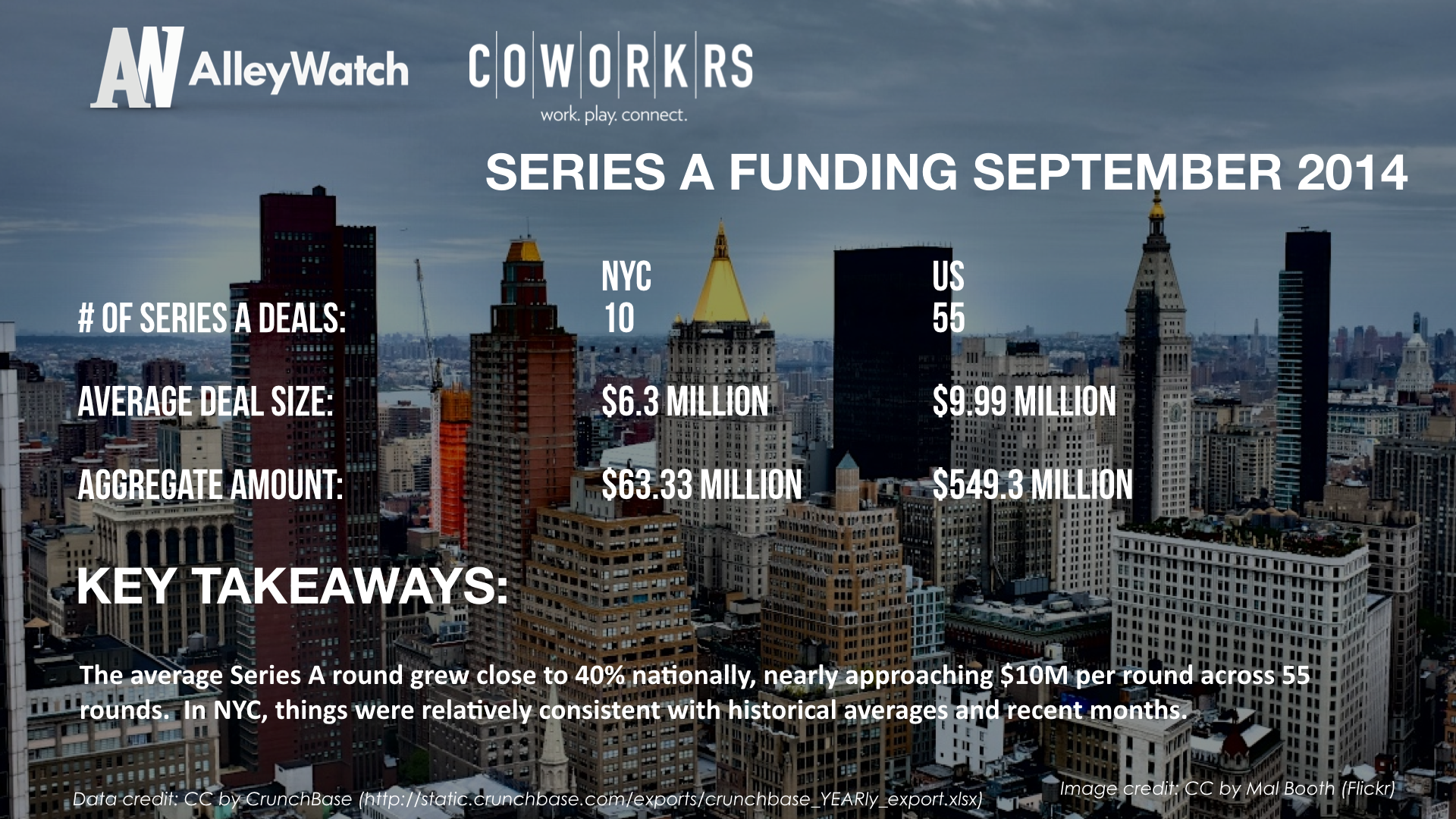 The number of deals remained relatively steady in September both nationally in New York with modest differences in amount. The average funding was up slightly from August levels in NYC with no real outliers to report.