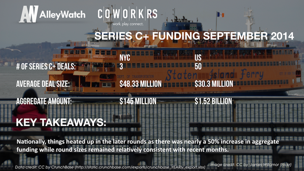 Average Series C+ round in NYC for September was $48.33M Tweet this