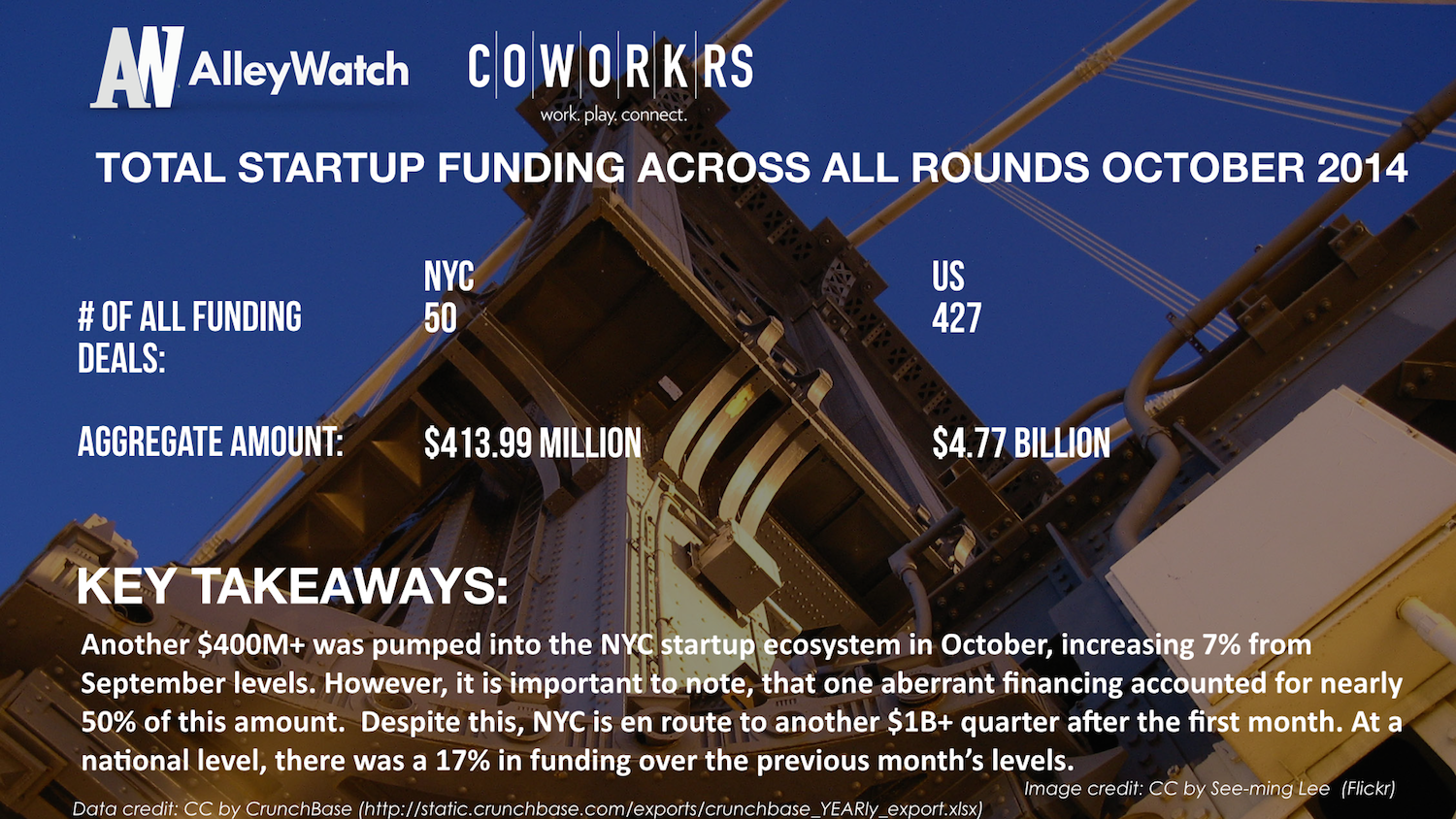 $414M was invested in angel and venture financing for #startups in October in NYC across 50 deals Tweet this