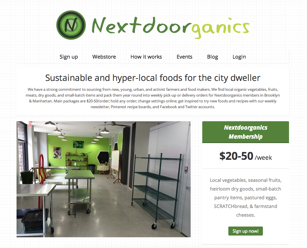 Nextdoorganics is a triple bottom line local food distribution company working to replace the industrial food system by sourcing from new, young, urban, and activist farmers and food makers to curate weekly grocery orders, which members get via pick up or cargo-bike delivery in New York City.