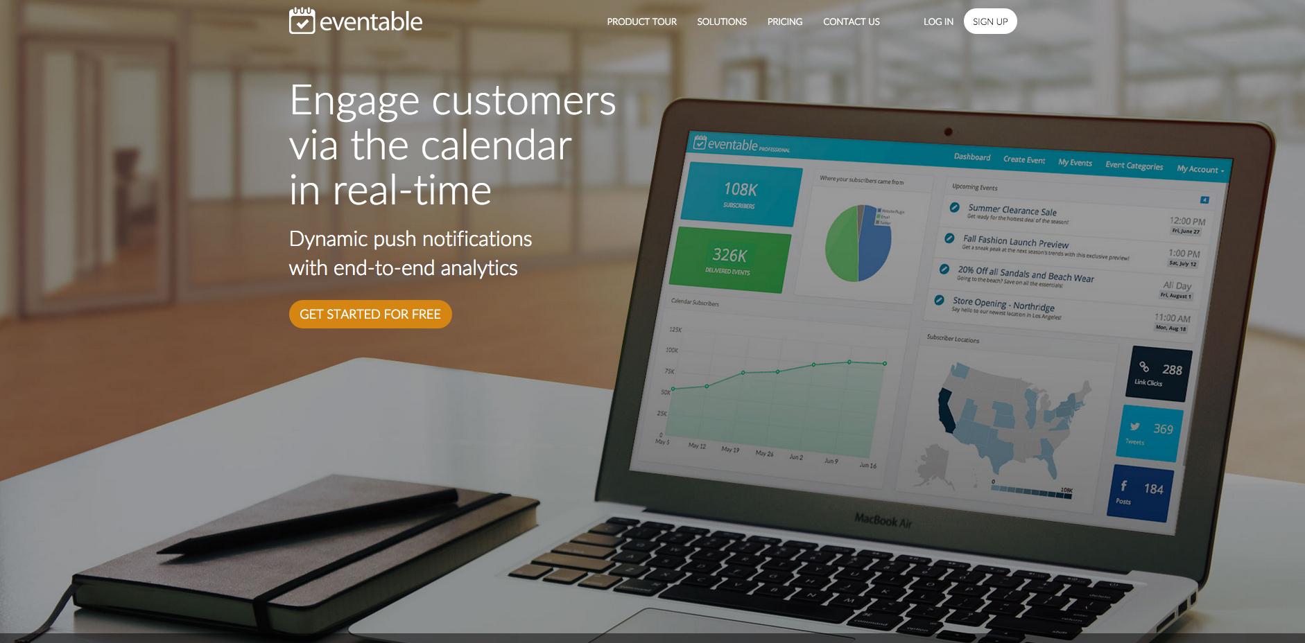 Eventable is a marketing platform that connects customers and brands through calendars. In real time, and geo-targeted. The platform populates events directly into customers’ daily schedules on their calendar of choice—including Google Calendar, Outlook, and iOS. And brands and businesses can send geo-targeted promotions, personalized content, and push notifications directly to any device in real-time, without having to spam people with a constant barrage of those email updates we’re all so fond of.