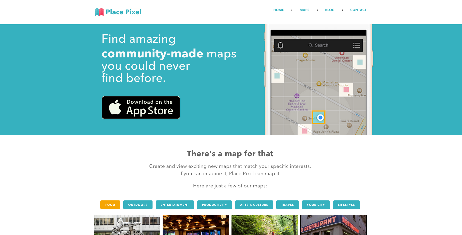 Place Pixel is a mapping app that allows people to find useful, fun, and interesting information that’s missing from current maps. Whether it’s quiet spots in New York or public art in San Francisco, Place Pixel users can find anything they care about. And by allowing free and open contribution, there’s no limit to what can be mapped.