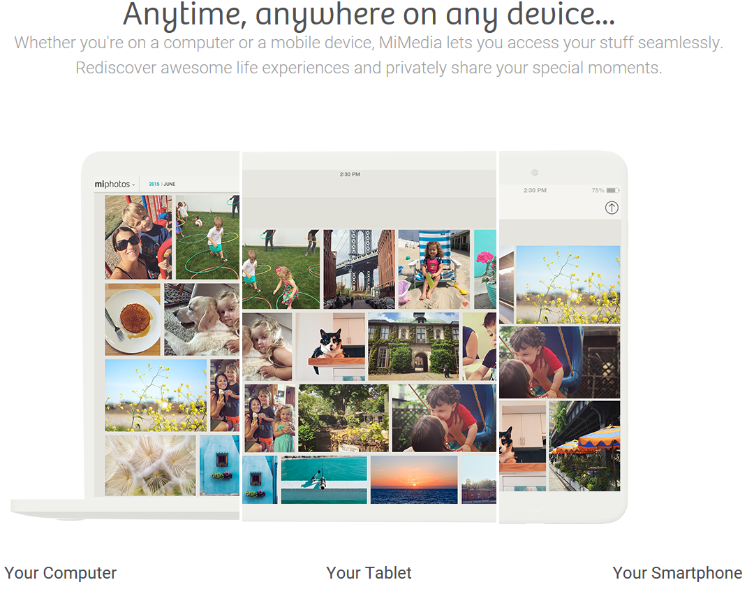 MiMedia is the only consumer cloud that focuses on consumers needs. MiMedia is not tech titan that is looking to sell you more hardware or advertising based on your actions. MiMedia is device agnostic and allows consumers to easily share across multiple operating systems. MiMedia is available on phones, tablets and web. A few key features make MiMedia more than a cold locker– or just a storage box– MiMedia provides Wallpaper which allows you to see photos from friends and family on your own device– this is the first of it’s kind. The MiDrive provides private sharing environments for friends and family to collaborate together by creating visual stories with chat and comments. One of our favorite features is ThisDay which is a proprietary algorithm that resurfaces photos, videos and music in a unique setting to the user based on either “surprise me” or a specific date in time.