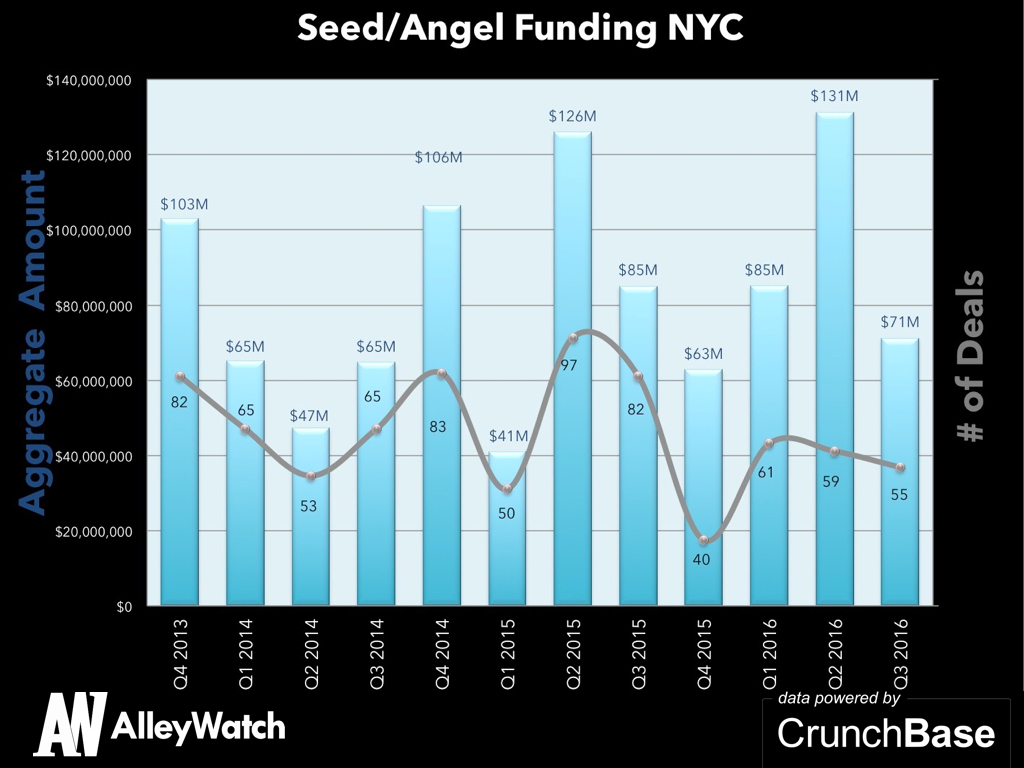 $131M was invested in seed/angel rounds in Q3 of 2016 in NYC in 55 deals Tweet this
