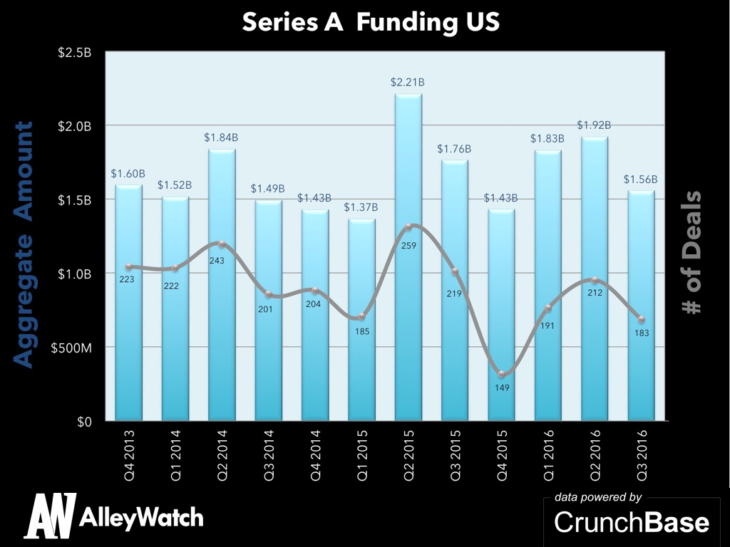 $1.6B was invested in 183 Series A rounds in Q3 of 2016 in the US Tweet this