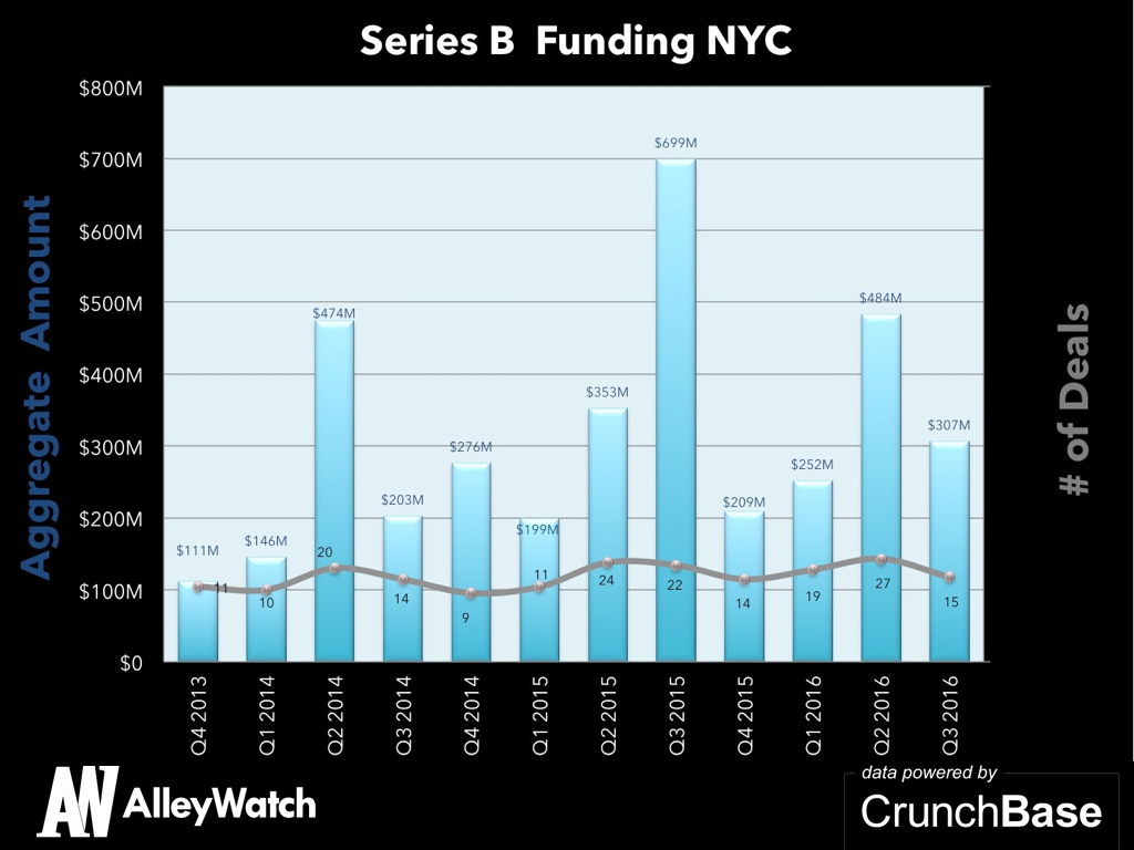 $307M was invested in 15 Series B rounds in Q3 of 2016 in NYC Tweet this