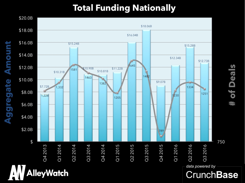 $12.8B was invested in Q3 of 2016 in the US in 1251 rounds Tweet this