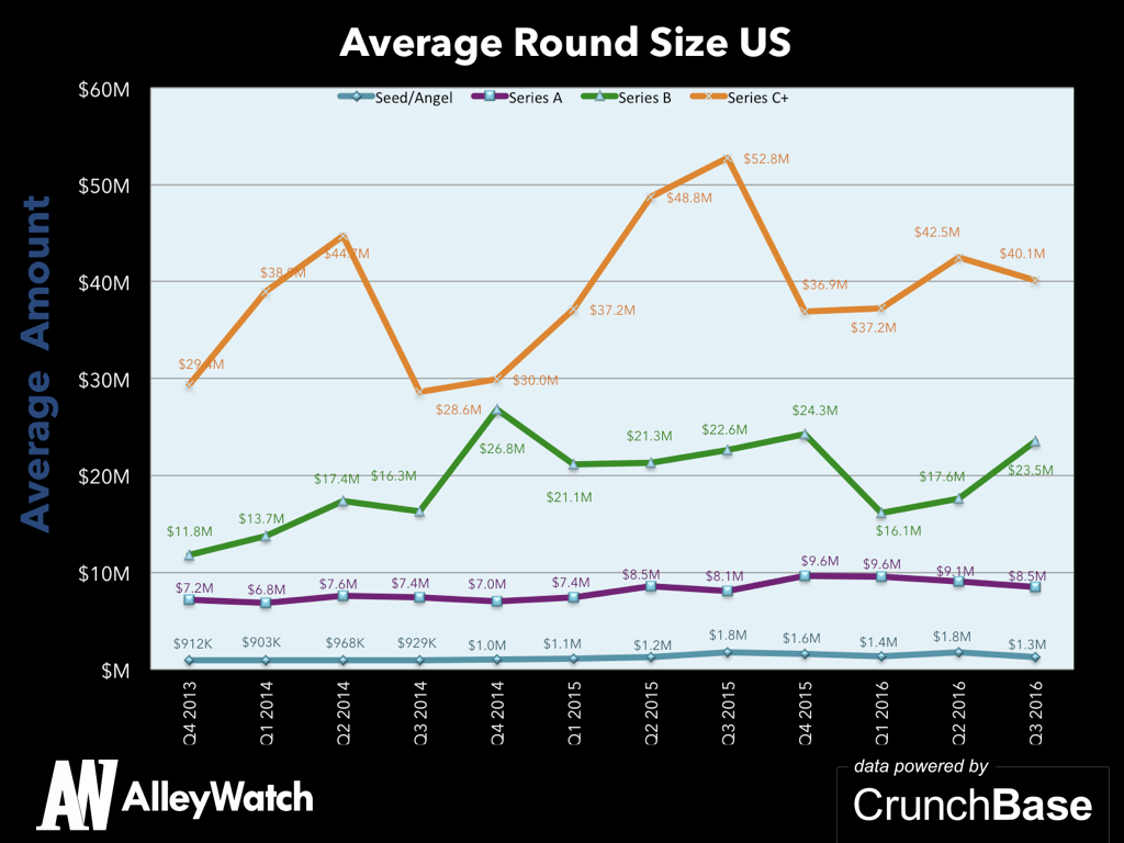 The average seed/angel round in the US in Q3 was $1.3M Tweet this
