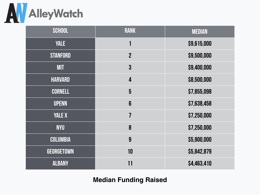 Among NYC Founders, Yale grads have raised the highest median amount at $9.62M Tweet this