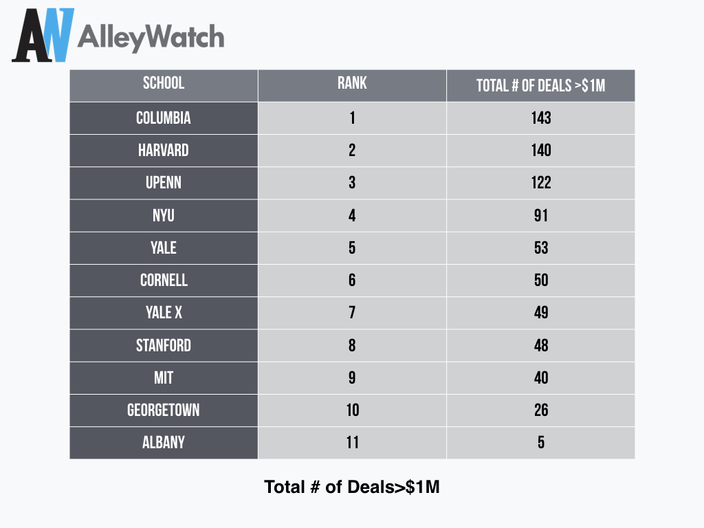 Among NYC Founders, Columbia grads take the top spot with 143 companies that have raised >$1M Tweet this