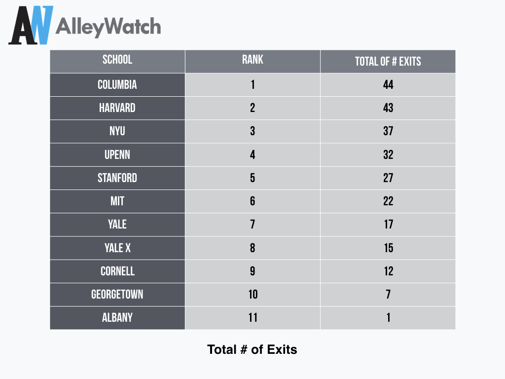 Among NYC Founders, Columbia leads with 44 companies founded by Columbia grads that have exited Tweet this