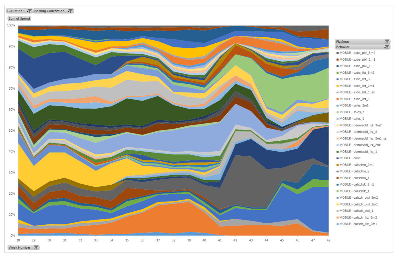 How much budget you spend within each audience, and within each channel, and how fast you adjust that budget as costs change