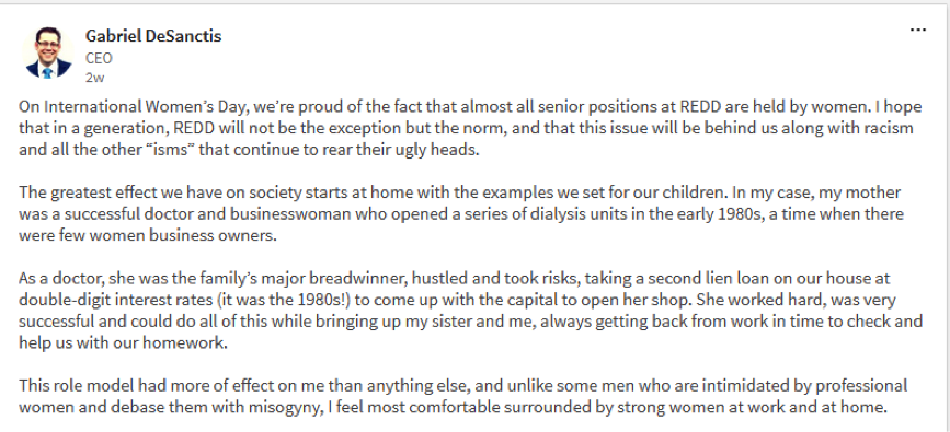 My cofounder wrote an inspiring message for International Women Day, I certainly believe that the day that companies like REDD stop being the exception we will have reached our goal.