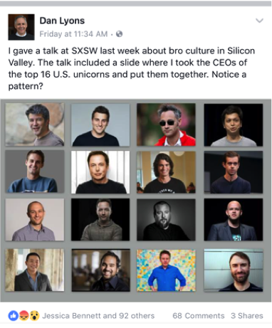 Look at the picture below with the CEOs of the top 16 US unicorns. This is how innovation looks for America and the world now. We need to change this.