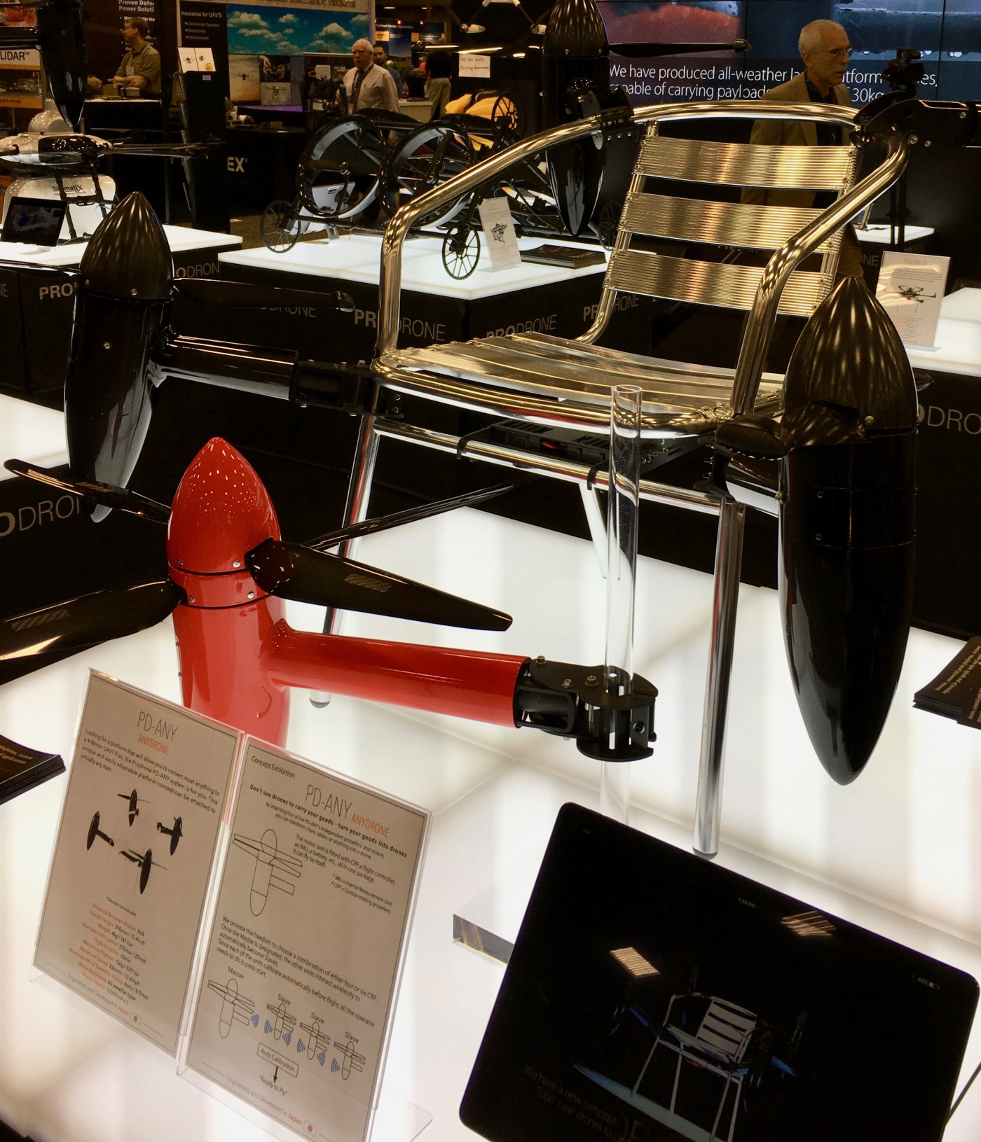 In the Startup Pavilion, William Fredericks of the Advanced Aircraft Company (AAC) demoed a novel technology using a hybrid of diesel fuel and lithium batteries with flexible fixed wings and multirotors, resulting in over 3 hours of flying time. AAC’s prototype, the Hercules (above) is remarkably lightweight and fast. Fredricks is an aircraft designer by trade with 12 designs flying in the air, including NASA’s Greased Lightning that looks remarkably similar to Boeing’s Osprey. The Hercules is available for sale on the company’s website for multiple use cases, including: agricultural, first responders, and package delivery. It is interesting to note that a few rows from Frederick’s booth was his former employer, NASA, promoting their new Autonomy Incubator for “intelligent flight systems” and its “autonomy innovation lab,” (definitely an incubator to watch).