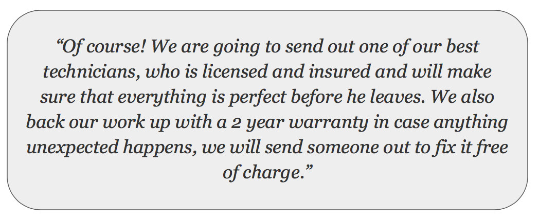 After hearing this, the prospect would feel comfortable knowing that the plumber understands her situation. This shifts the conversation from “selling”, to a discussion around how to fix the problem.