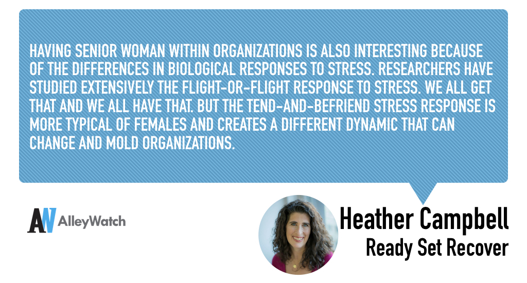 Having senior woman within organizations is also interesting because of the differences in biological responses to stress. Researchers have studied extensively the flight-or-flight response to stress. We all get that and we all have that. But the tend-and-befriend stress response is more typical of females and creates a different dynamic that can change and mold organizations. As there are high levels of stress within senior management, having the variety of biologically responses can work to the advantage of organizations as a whole. If you believe that diversity gives you benefits, then this is an important element that can be leveraged for creating culture, structure and strategy within organizations.