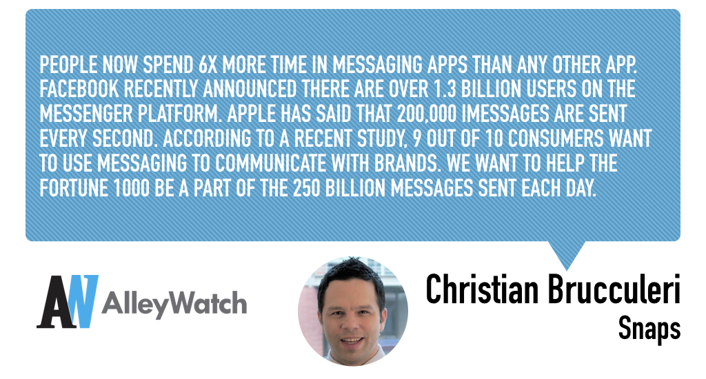 250 billion messages are being sent every day and marketers are restless trying to capture this market. Messaing, voice, and chat bots are redefining marketing and automation. At the forefront of this revolution is Snaps, an end-to-end mobile conversational platform already being used at some of the finest brands in the world including Nike, Pepsi, Coca-Cola, McDonalds, and even the Cleveland Cavaliers. The company’s cloud solution already integrates seamlessly with the largest messaging platforms such as iMessage, Facebook Messenger, Giphy, Skype, and many others.