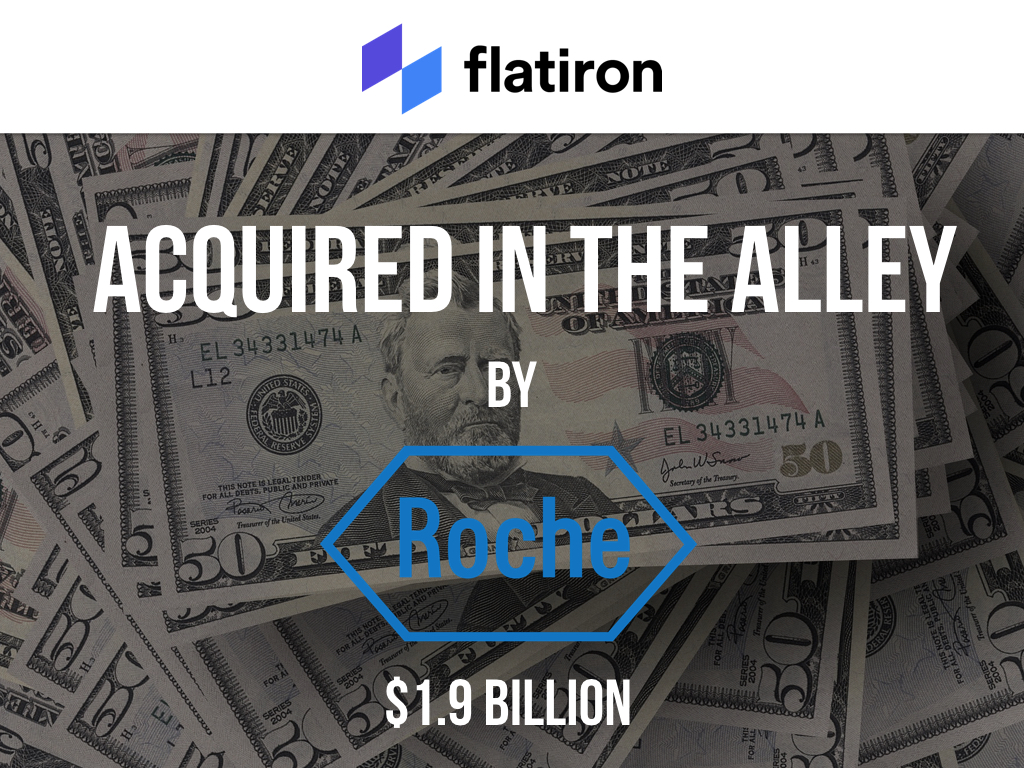 Founded by Turner and Zach Weinberg in 2012, Flatiron had raised $313M in funding over three funding rounds with its last round coming in at $1.175B post-money valuation in 2016. Both Turner and Weinberg cofounded Invite Media, which was acquired by Google. Backers of the company include SV Angel, First Round Capital, Andreessen Horowitz, GV, Great Oaks Venture Capital, BoxGroup, Social Capital, Allen & Company, IA Ventures, David Tisch, Grape Arbor VC, Stripes Group, Baillie Gifford, Aaron Levie, Casdin Capital, LabCorp, Jack Abraham, Jared Hecht, Roche, and Edward Zimmerman. Roche previously owned $12.6% of the company prior to the acquisition.