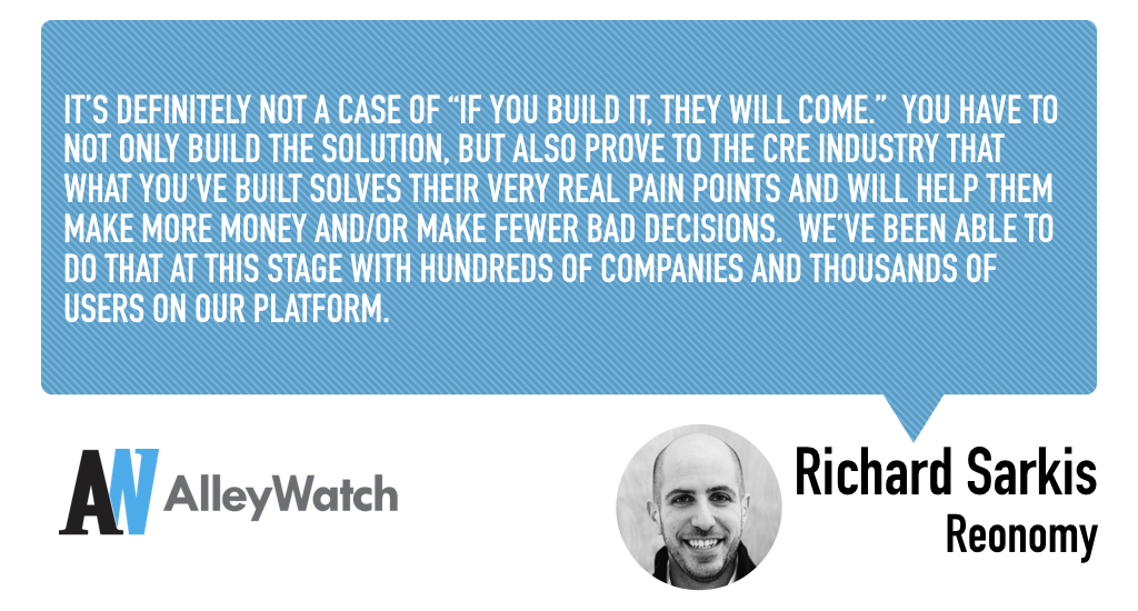 It’s definitely not a case of “if you build it, they will come.” You have to not only build the solution, but also prove to the CRE industry that what you’ve built solves their very real pain points and will help them make more money and/or make fewer bad decisions. We’ve been able to do that at this stage with hundreds of companies and thousands of users on our platform.