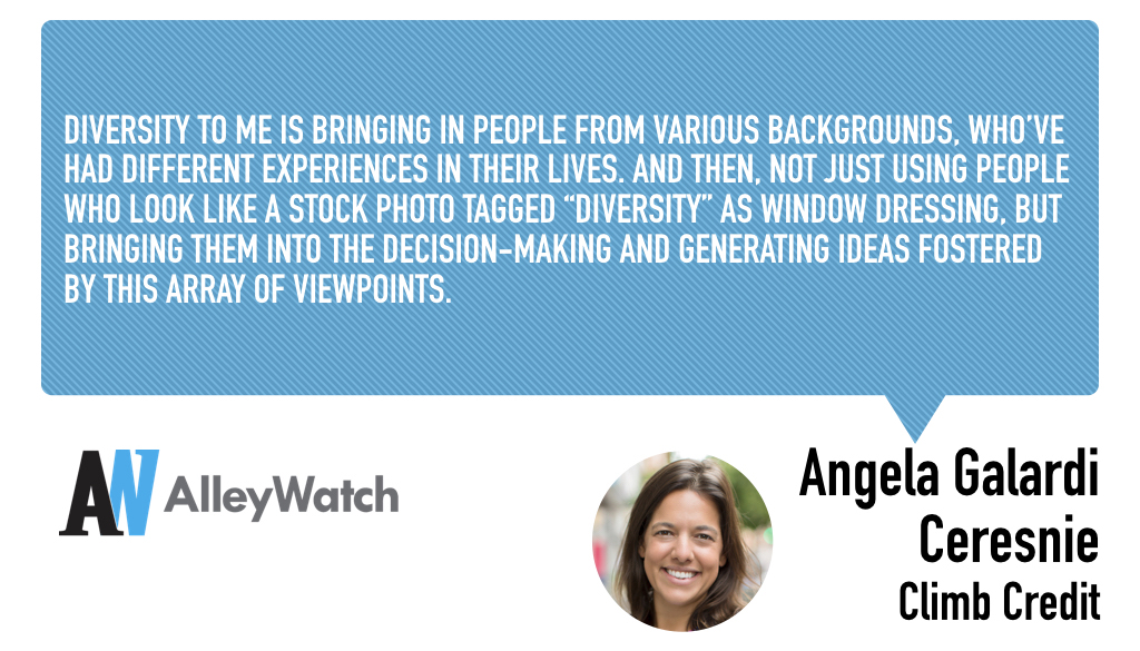Diversity to me is bringing in people from various backgrounds, who’ve had different experiences in their lives. And then, not just using people who look like a stock photo tagged “diversity” as window dressing, but bringing them into the decision-making and generating ideas fostered by this array of viewpoints.