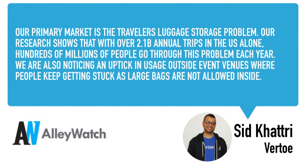 Vertoe is a very unique and novel concept. Instead of creating new storage facilities, it uses unused space in local shops and small businesses to help people who have short term storage needs like – luggage storage before check-in or check-out or when they are stuck outside their favorite sporting event or concert where backpacks are not allowed. These are problems that historically went unserved in society due to lack of affordable and convenient solutions. Much like Airbnb, Vertoe operates as a marketplace and the model can be scaled very quickly.