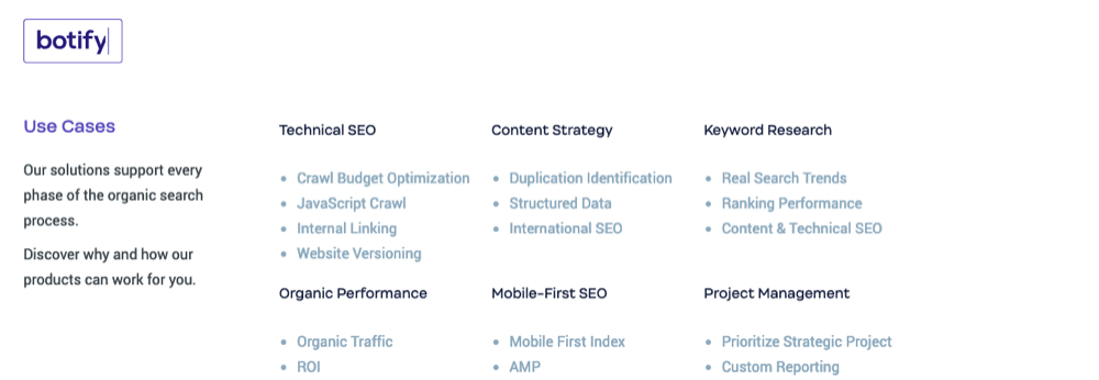 Description: Botify is the first unified suite of applications assisting enterprise SEO stakeholders in each phase of the organic search process.