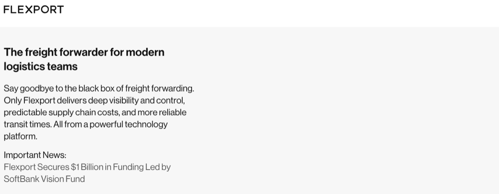 Description: San Francisco-based Flexport is a full-service global freight forwarder and logistics platform using modern software to fix the user experience in global trade. Founded by Ryan Petersen in 2013, Flexport has now raised a total of $1.3B in reported equity funding.