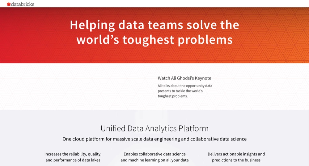 Description: Databricks is a platform that helps its customers unify their analytics across business, data science, and data engineering.