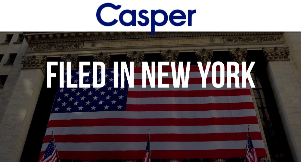 Casper files S1. $312M in revenue for Q1-Q3 2019 up from $260M in 2018. $126M in sales in marketing expense up from $107M. $55M cash on hand. Still losing money.