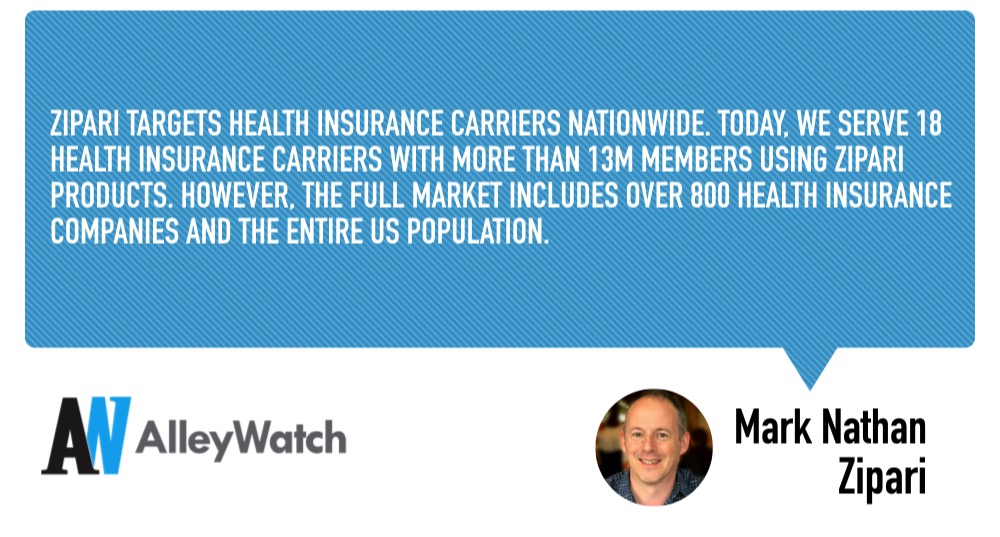 Zipari targets health insurance carriers nationwide. Today, we serve 18 health insurance carriers with more than 13M members using Zipari products. However, the full market includes over 800 health insurance companies and the entire US population.