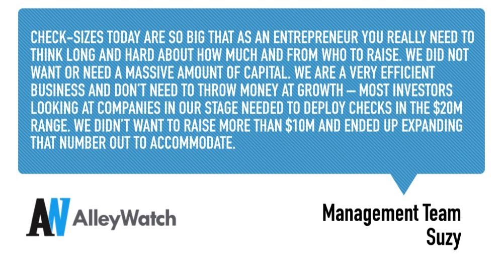 Check-sizes today are so big that as an entrepreneur you really need to think long and hard about how much and from who to raise. We did not want or need a massive amount of capital. We are a very efficient business and don’t need to throw money at growth – most investors looking at companies in our stage needed to deploy checks in the $20M range. We didn’t want to raise more than $10M and ended up expanding that number out to accommodate.
