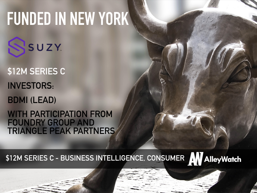 Suzy raised at $12M Series C led by Bertelsmann Digital Media Investments Inc. (BDMI), with participation from Foundry Group and Triangle Peak Partners.