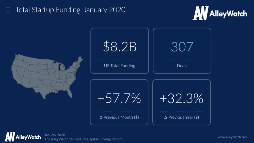 $8.2B was invested in startups in January in the US across 307 deals Tweet This