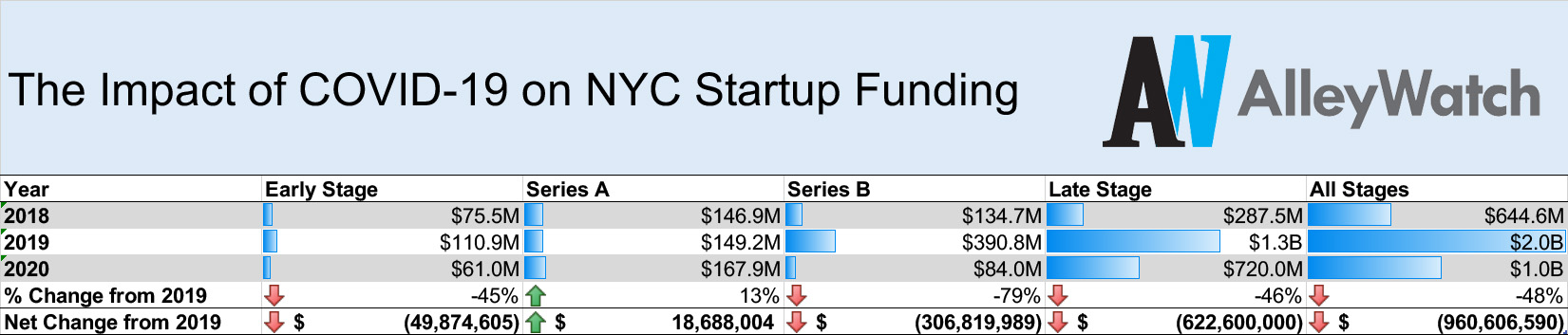 Total startup funding in NYC is down $960.6M from year-ago levels since the lockdown started on March 15th Tweet This