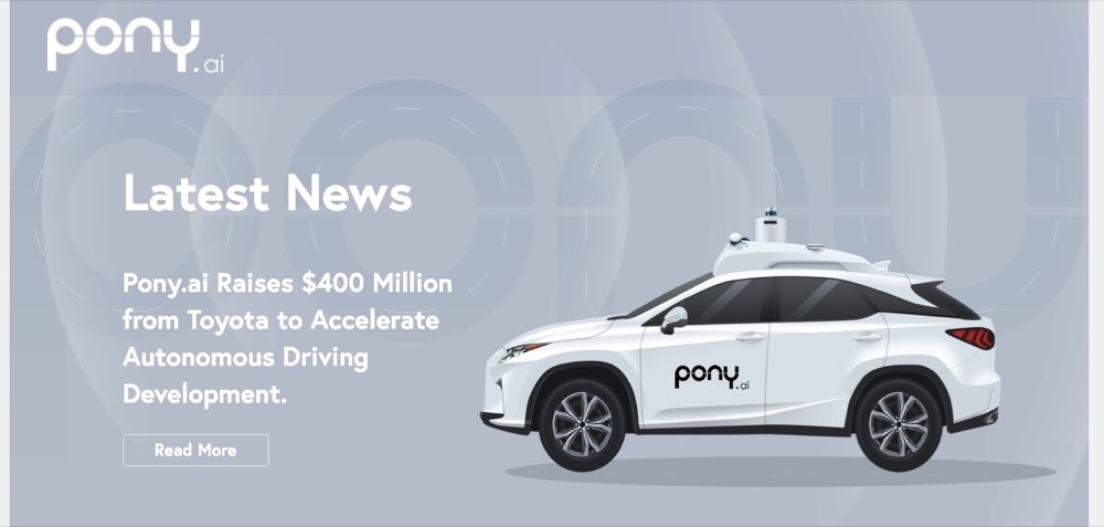 Description: Fremont-based Pony.ai is a startup that builds full-stack autonomous driving solutions Founded by James Peng and Tiancheng Lou in 2016, Pony.ai has now raised a total of $993.0M in total equity funding and is backed by investors that include Sequoia Capital, KUNLUN, 5Y Capital, Toyota Motor Corporation, and Eight Roads Ventures.