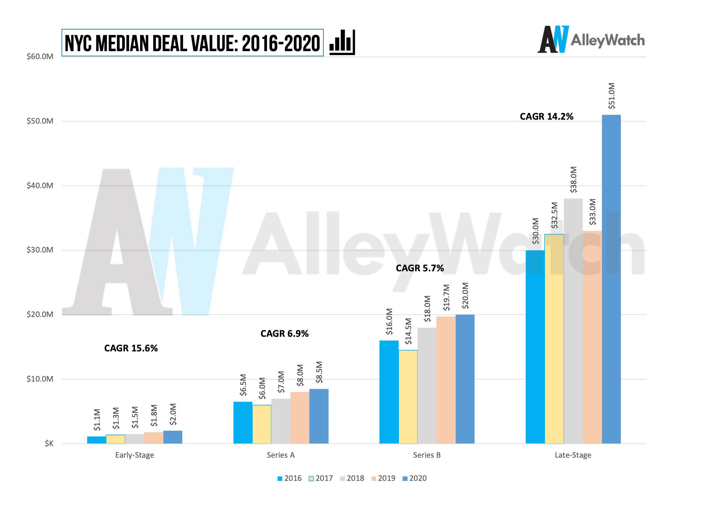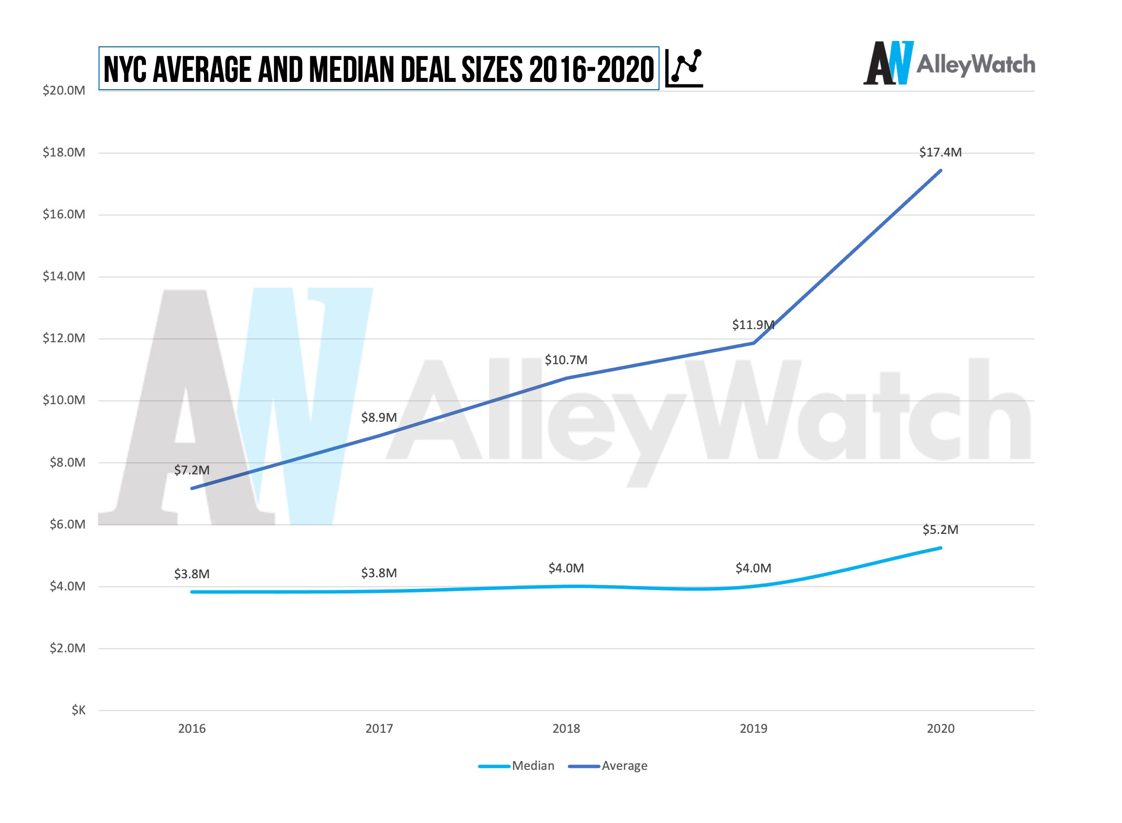 Average and median deal sizes for NYC startups continue to increase with profound growth in 2020 as investors doubled down on portfolio companies and proven opportunities.