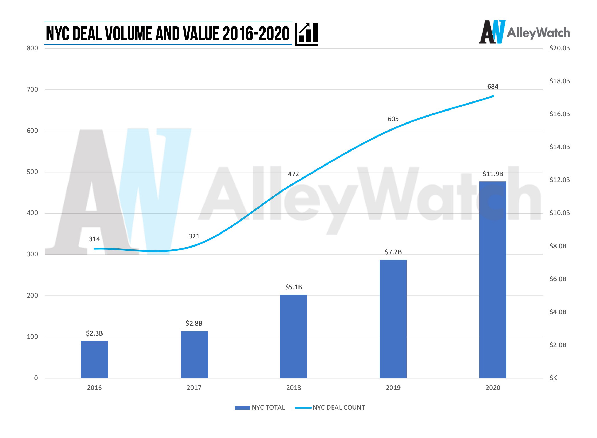 New York City Venture Capital activity in 2020 hit a record level in terms of both investment amount and number of deals.