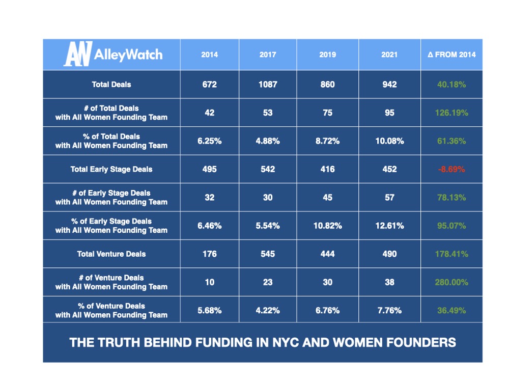 12.6% of early-stage funding deals went to all-female founding teams in NYC Tweet This