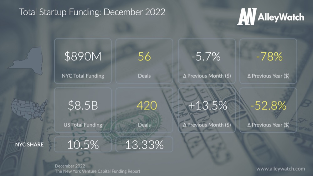 10.5% of startup funding nationally went to startups in NYC in December Tweet This