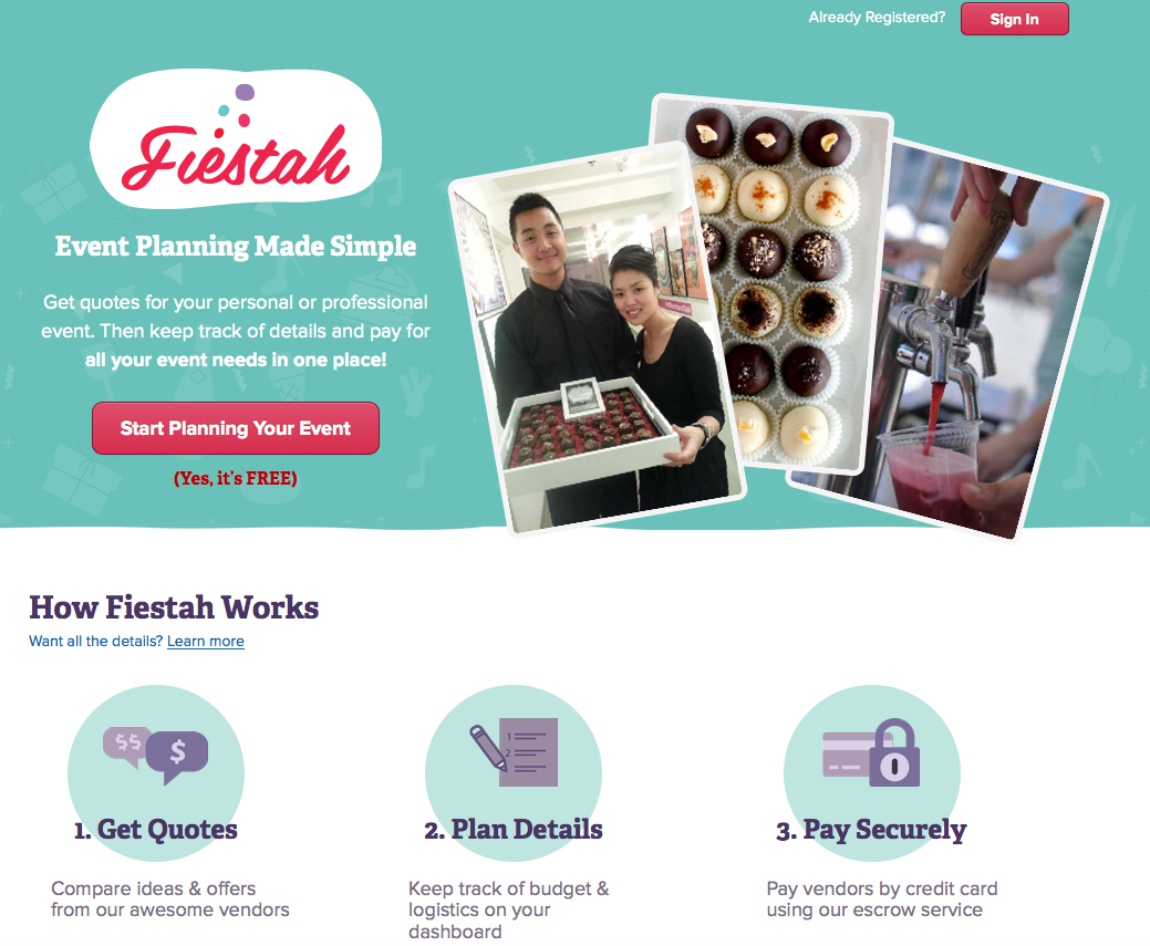 Fiestah is event planning made simple by brings together the power of a marketplace with event planning tools for event organizers and vendors. Fiestah lets them connect, collaborate, and transact securely from one place. All, online, of course.