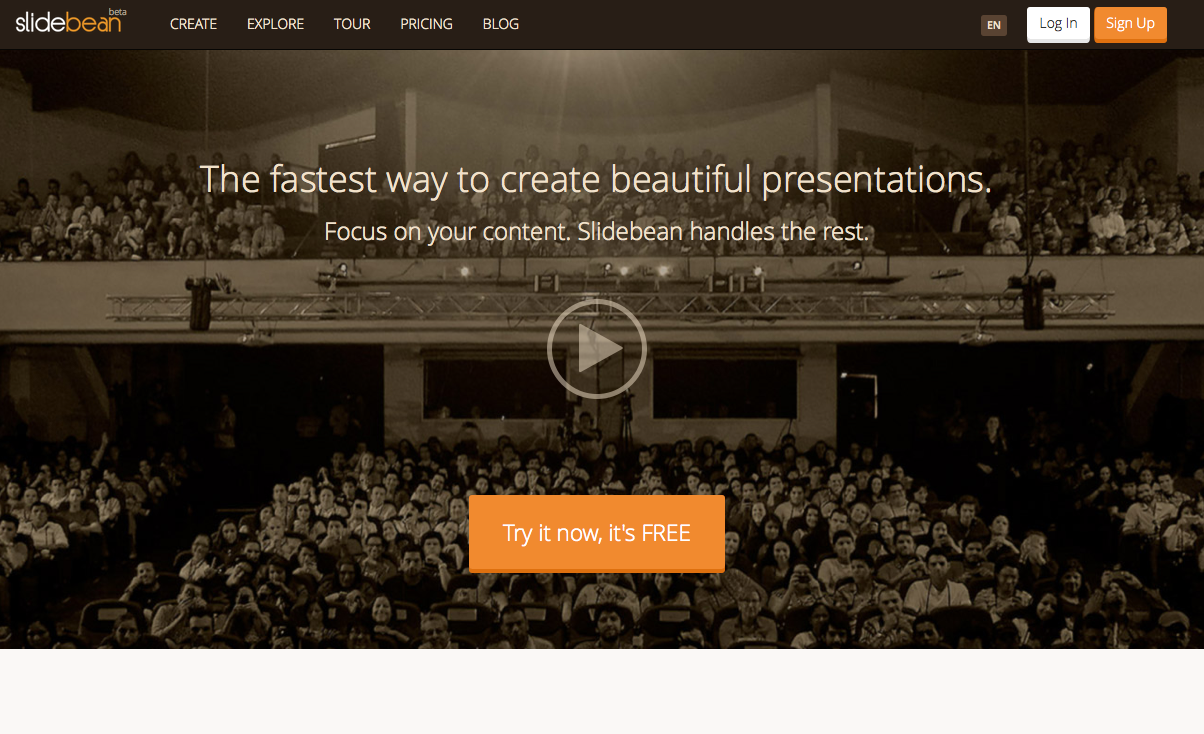 Slidebean allows presenters to create beautiful presentations in seconds, letting them focus on their content while the tool takes care of the rest.