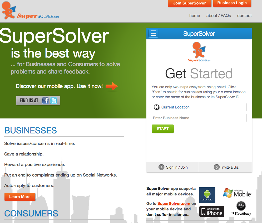 SuperSolver, Inc. is a customer feedback and issue resolution SaaS solution. The patent pending mobile app and enterprise class software solution provides realtime, bidirectional customer feedback and problem resolution management between consumers and businesses, and businesses and businesses. It is the “1800 How’s My Driving” for everything else.