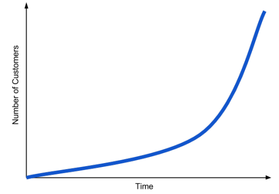 This is an intimidating chart. The number of customers grows slowly at first and then hits an inflection point where it begins to grow exponentially. How in the world do you design a company that can grow this way? How can you plan for that kind of growth?