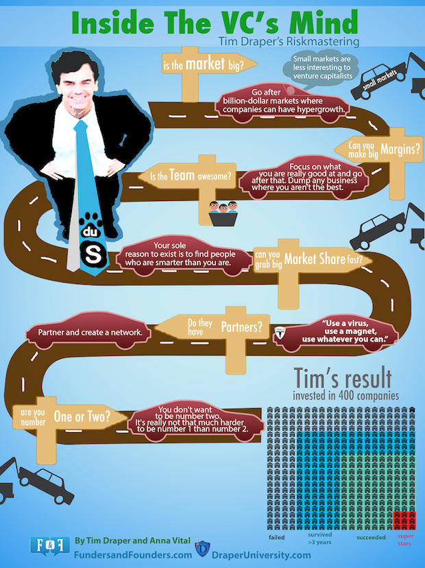 Ever wonder what’s going on inside the mind of Venture Capitalists? Tim Draper and Anna Vital are taking us through the mind of the VC. They have found that Venture Capitalists don’t like to play it safe. Small markets are not interesting to them. Instead, they go after billion-dollar markets where companies can have hyper growth. Also, they look for people who are smarter than they are to team up with and create networks. Draper invested in 400 companies. Of those, many succeeded but only a handful became superstars. Venture capitalists, don’t let those numbers stop you from striving for being number one, and never settle for being number two.