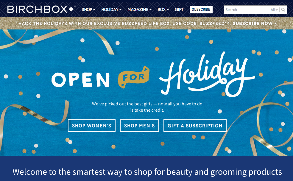 You know the drill. Monthly deliveries of personalized beauty, grooming, and lifestyle samples, tailored to one’s profile, all delivered in a neat little birch box. What’s not to love? And you get your cult brands, up-and-coming lines, and everything in between, for everyone on your list. And everyone in between.