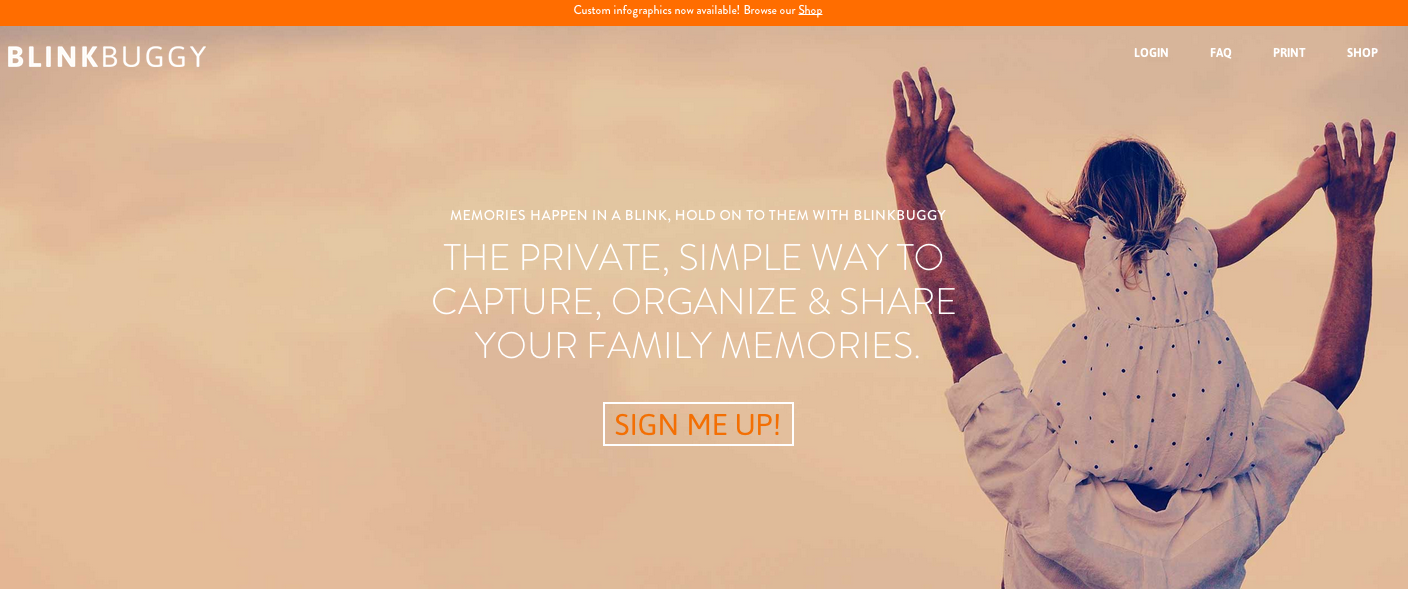 Blinkbuggy is a platform that allows parents to capture, organize, share and store family memories in one safe place. Let’s face it: life logging is basic human nature, and no one takes more pictures and capures more moments than new parents. Blinkbuggy gives families an easy way to integrate images, notes and quotes as they happen, and then transform them into unique stories that are centralized and organized—all, while maintaining full privacy controls.