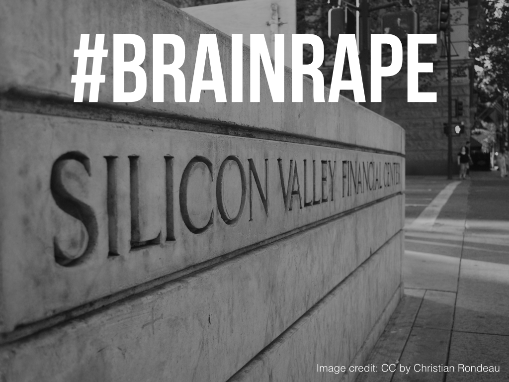 This week’s episode of HBO’s Silicon Valley show ‪used the term #‎brainrape.* Brainrape refers to when an angel or VC feigns interest in investing in your startup, only to get access to your startup’s proprietary information. Sadly, this does happen.