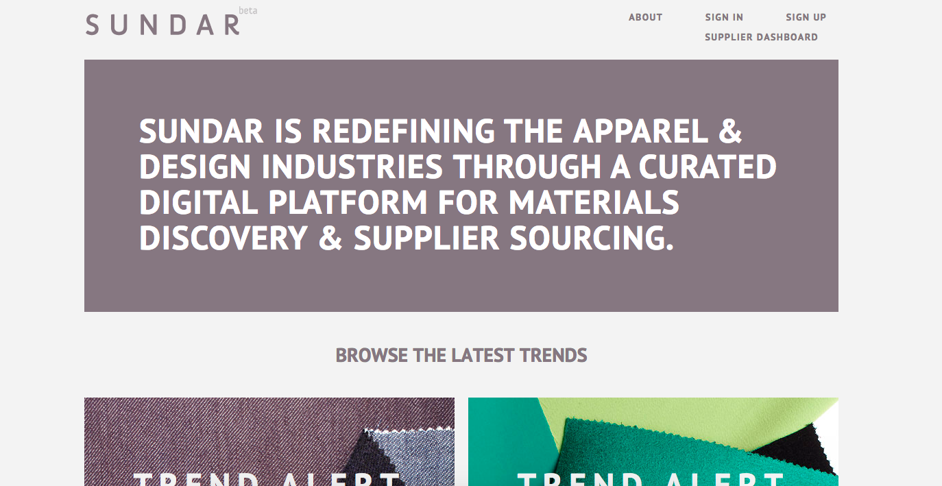 Sundar is a collaborative platform that connects creative professionals with quality materials and qualified vendors globally. Sundar streamlines the discovery and sourcing process for the apparel and accessories industries by providing sophisticated search, curation and data-driven insights to buyers and sellers, 24/7.